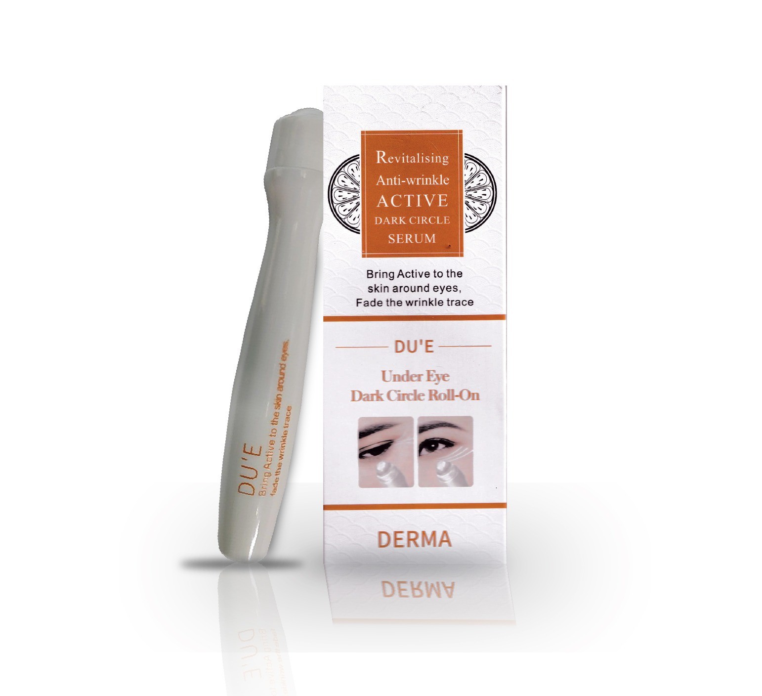 Clean the surroundings near the eyes thoroughly. Apply DU'E under the eye dark circle Roll on directly under the eye region make a 3-5 round roll message on the skin around your eyes to ensure the essence is absorbed by the skin.